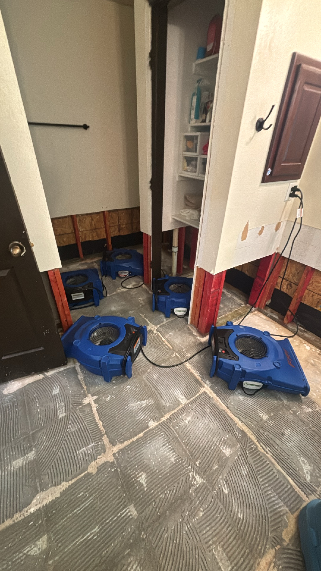 Water damage assessment was conducted using a moisture meter to identify affected areas. Subsequently, damaged flooring and drywall were removed, and professional drying equipment, including air movers, was strategically placed to thoroughly dry the subfloor and structural elements of the bathroom. This comprehensive water damage restoration service aimed to prevent further damage and prepare the space for reconstruction.