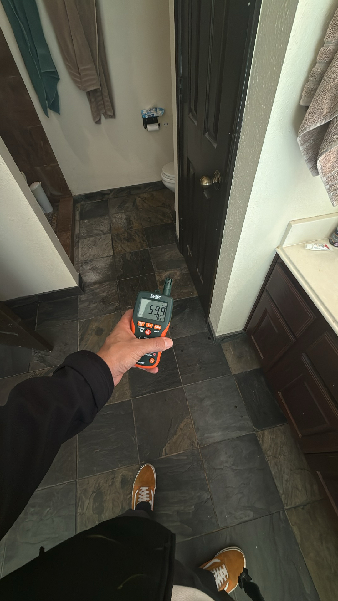 The customer experienced significant water damage in their bathroom, requiring professional intervention to assess, mitigate, and dry the affected areas.