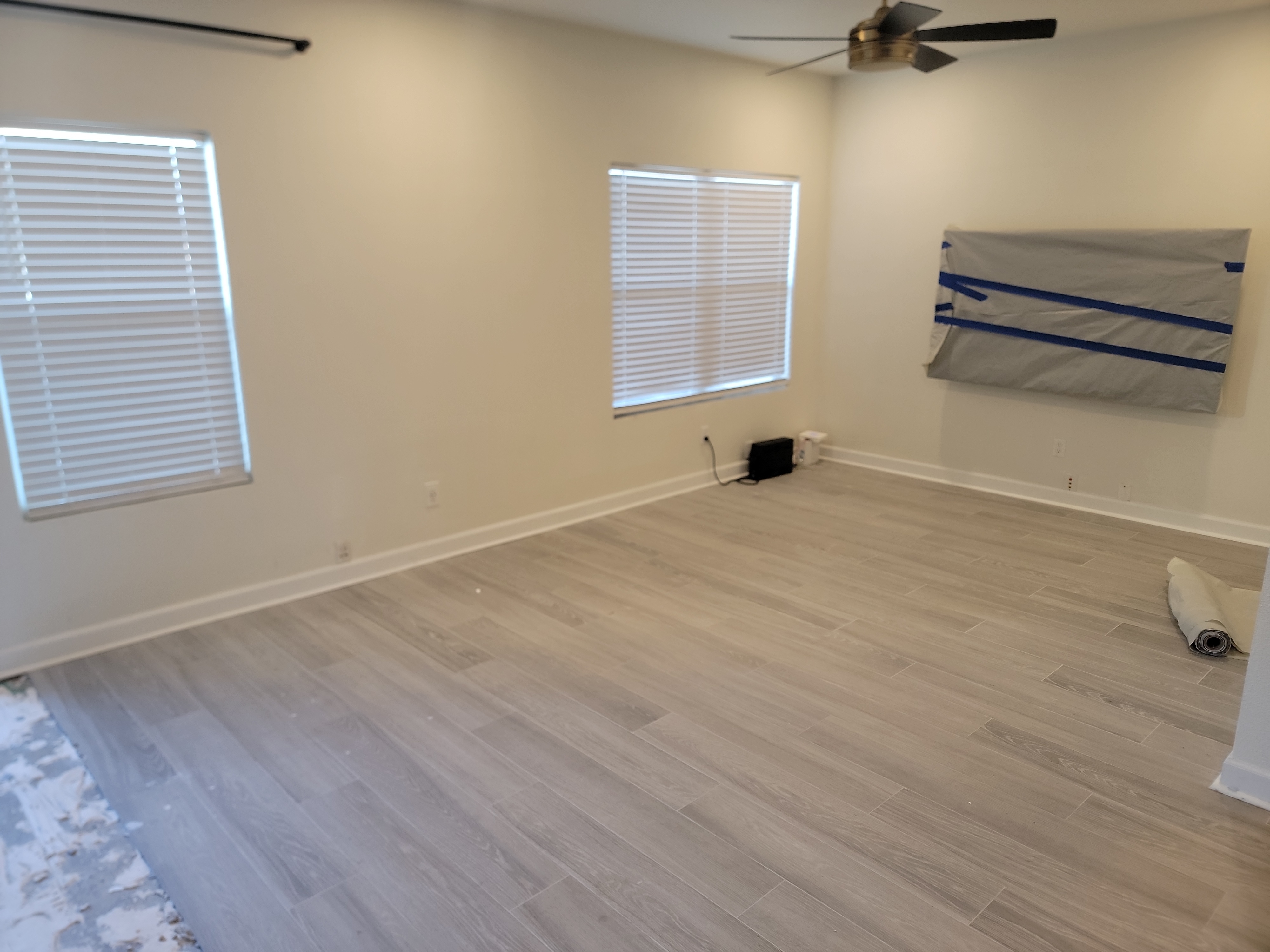 Fire Reconstruction Inc. provided comprehensive water damage restoration services, which included assessing the damage, removing compromised flooring materials, preparing the subfloor, and installing new light grey wood-look tile flooring throughout the affected areas. The project also involved careful content manipulation and moving items to facilitate the restoration process.