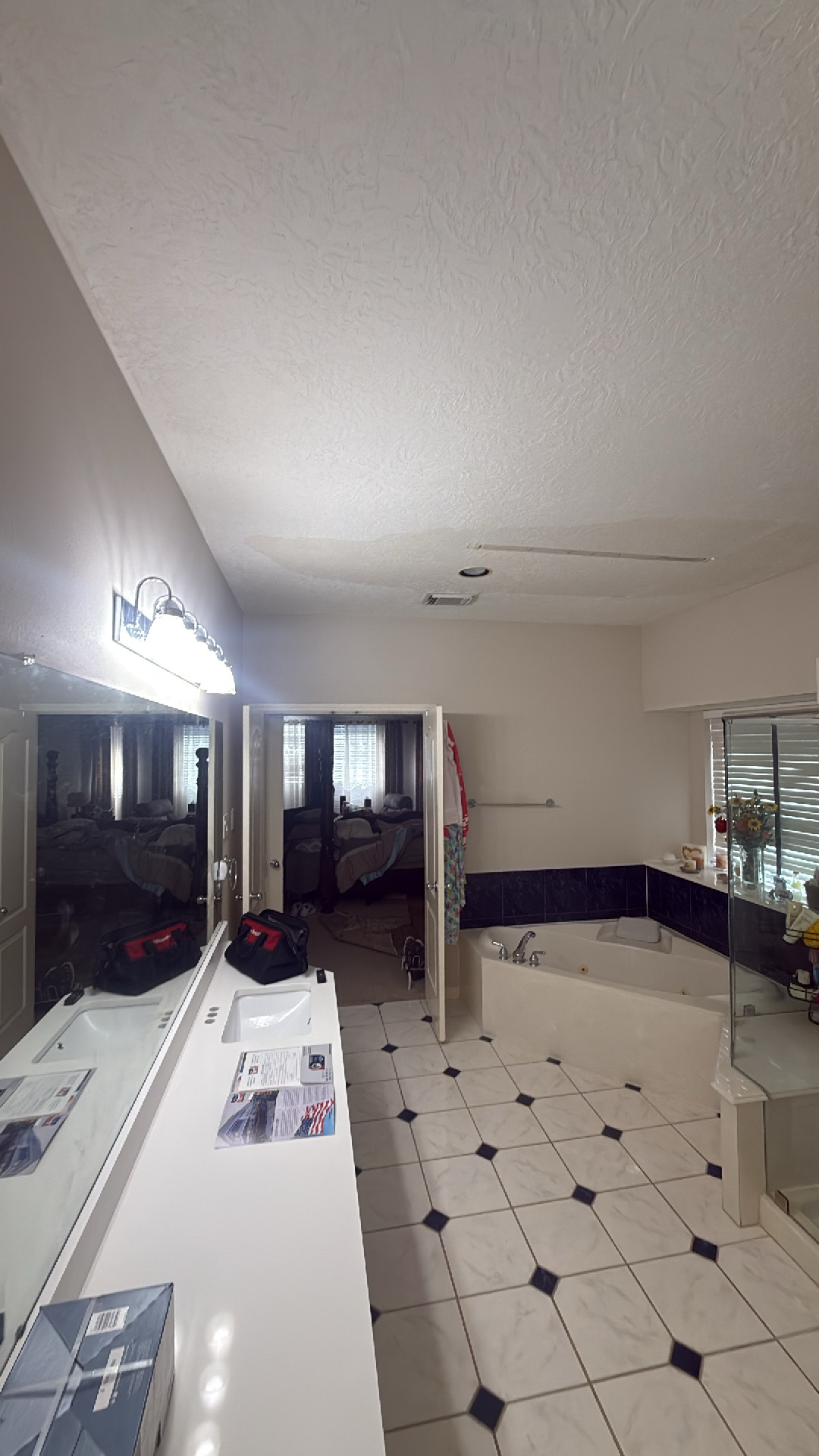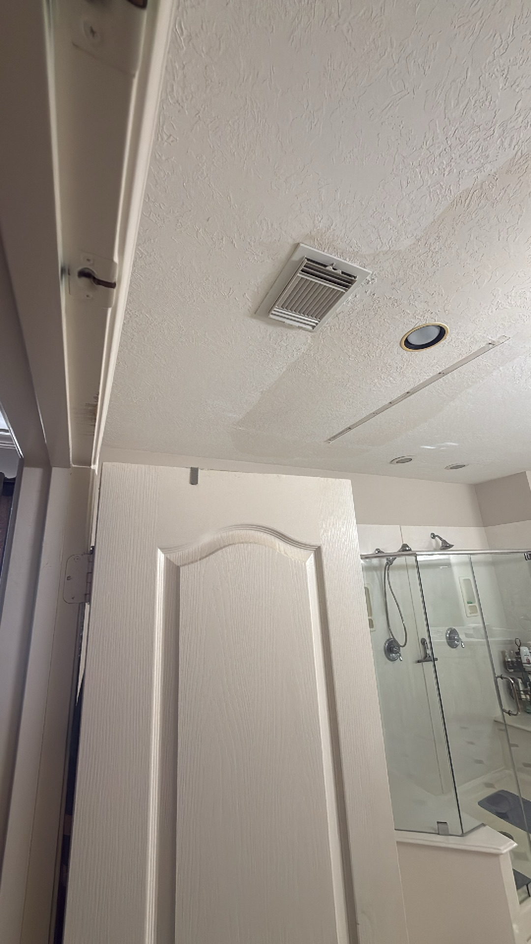 Provided comprehensive water damage restoration services for the affected bathroom. This included thorough moisture detection, professional drying, and necessary repairs to restore the ceiling and surrounding areas to their pre-damage condition.